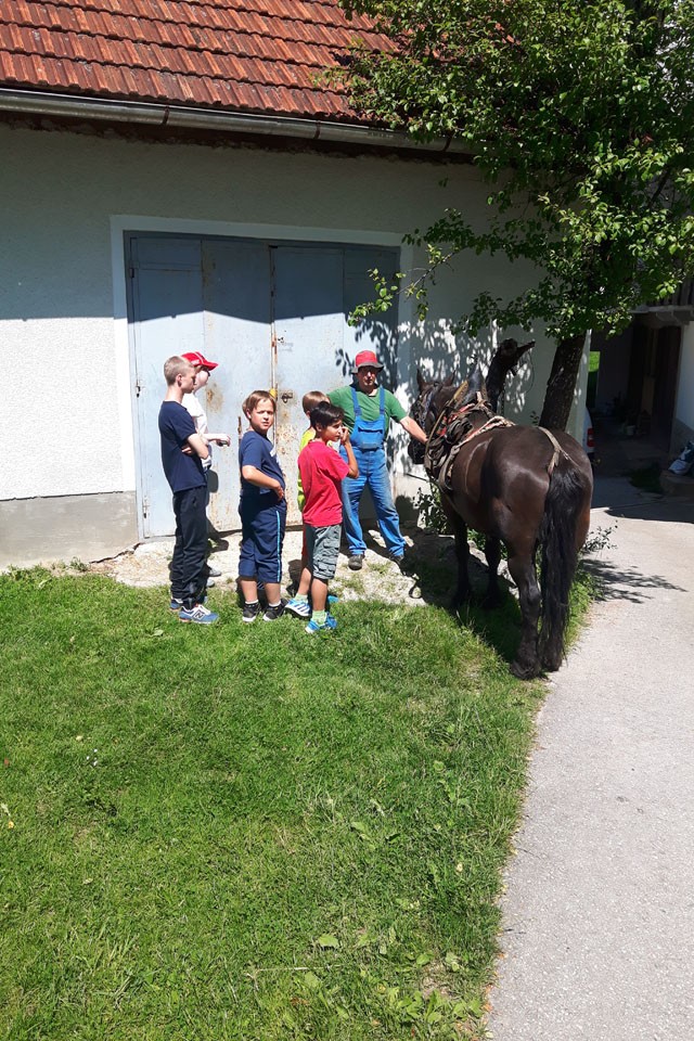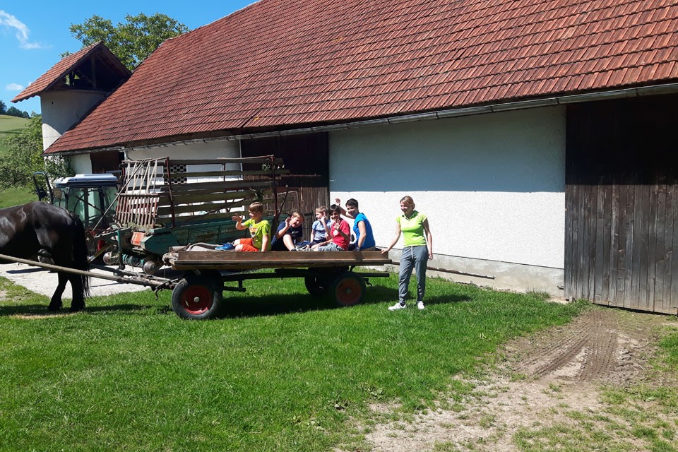 Na tabor smo začeli prihajati že v četrtek od 14. ure popoldne. Najprej smo se namestili v sobe in se razpakirali. Nato smo se odpravili na sprehod, saj smo bili vsi željni spoznati okolico, v kateri bomo nekaj časa bivali. Pokrajina je bila čudovita, dejansko je bila kmetija na samem, tako da smo lahko maksimalno uživali v naravi. Pred kmetijo so bila postavljena igrala, na katerih so uživali mlajši. Spoznavali smo dela in živali na kmetiji ter se preizkusili v molži krave, kar nam je šlo vsem odlično od rok. Tudi hrana je bila odlična. Na kmetiji smo ogromno časa uživali na prostem, opazovali živali in raziskovali nam nepoznano okolico. Vsak večer smo se družili ob igranju družabnih iger, katere smo prinesli s sabo. Na kmetiji smo spekli vsak svoj kruh, ki smo ga nekateri z užitkom pojedli, drugi pa rajši malo prihranili. Imeli smo tudi čudovit izlet s konjem, ki nas je po skupinah zapeljal malo naokrog. Tudi vreme nam je bilo vse 4 dni res naklonjeno. Na taboru smo resnično uživali ter spoznali marsikaj novega in zanimivega, pa tudi družili smo se lahko ves čas. Čeprav so nas v nedeljo starši že močno pogrešali se mi že vnaprej veselimo našega ponovnega druženja brez njih.